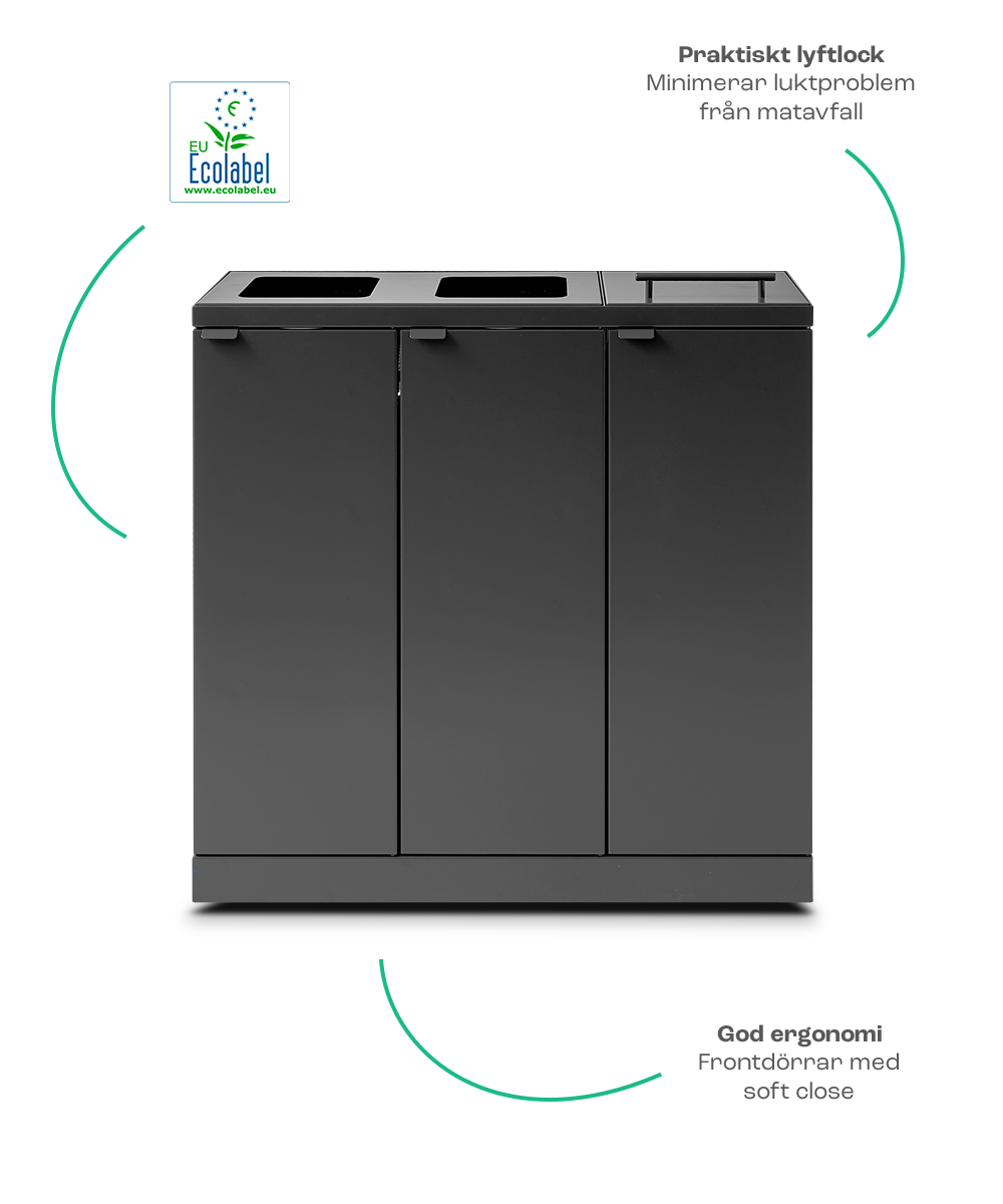 Faktiskt kan största delen av jordens avfall återanvändas. Men det kräver att vi blir bättre på att sortera vårt avfall. Det är därför vi finns här. I mer än 10 år har vi utvecklat stilrena och flexibla avfallssorteringslösningar som passar in på kontoret och ute på skolgården.