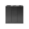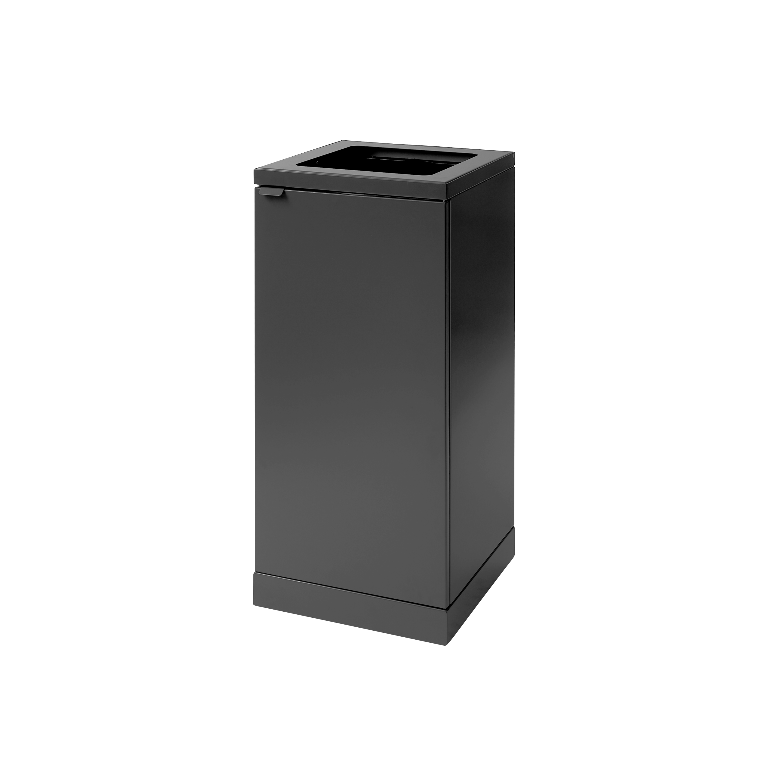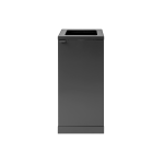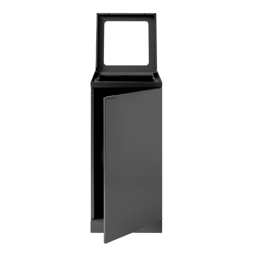 Avfallsbehållaren är försedd med frontdörr med soft close för ergonomiskt korrekt tömning utan tunga lyft. Avfallsbehållaren är utrustad med en integrerad och stark påshållare så att påsen håller sig på plats. Locket döljer även påsen, så avfallsbehållaren håller en stilren design. Avfallssystemet är mobilt tack vare de monterade hjulen, som är gömda bakom sockeln. Avfallslösningen levereras med ett magnetiskt väggfäste som den ska fästas vid.