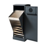 Stilren och ergonomisk avfallsbehållare från Bica säkerställer enkel och användarvänlig avfallssortering inomhus. Avfallsbehållaren är designad med en rund inkast, där en kraftig gummimatta säkerställer enkel insättning av flaskor och burkar. Inkastet kan ändras till ett helt öppet inkast. Avfallsbehållaren är försedd med tippbar insats med kraftig påshållare och frontdörr för ergonomiskt korrekt tömning utan tunga lyft.