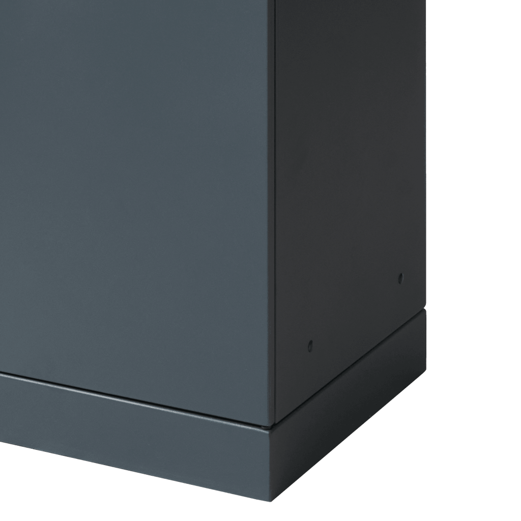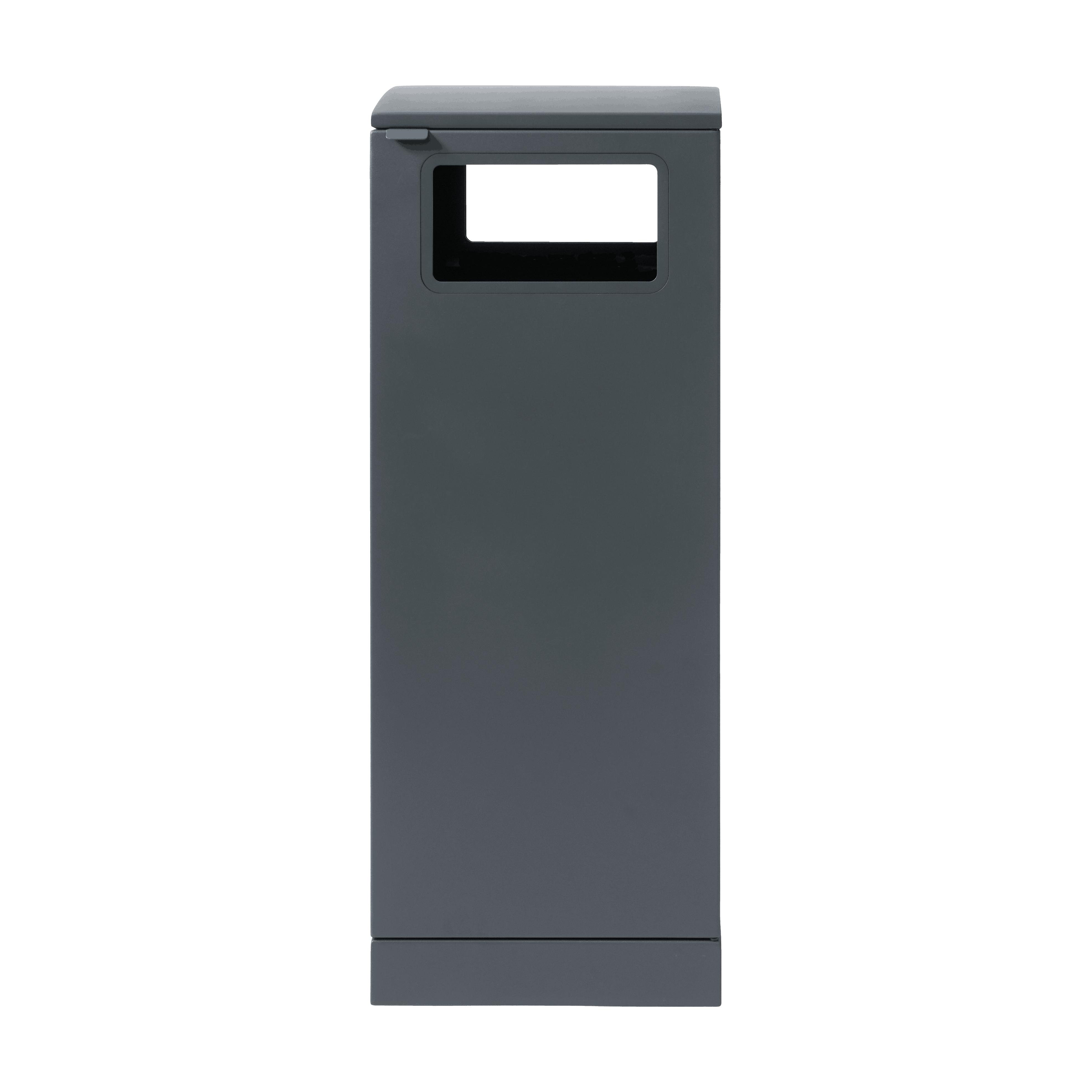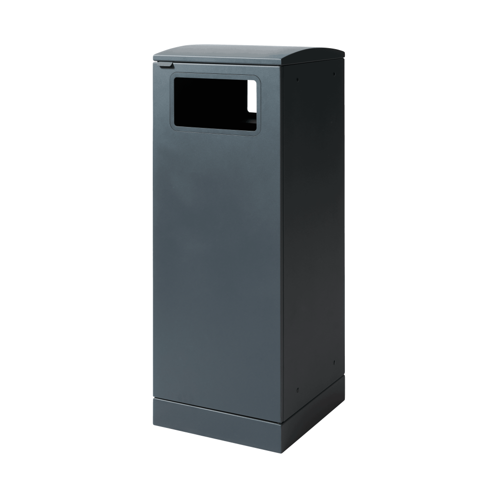 För att uppnå en stilren design, lång livslängd och minimalt underhåll är avfallsbehållaren gjord av pulverlackerat stål. De rena linjerna i designen gör den till en avfallsbehållare som naturligt kan vara en del av inredningen. Inga synliga fötter och gångjärn säkerställer en minimalistisk och elegant look.