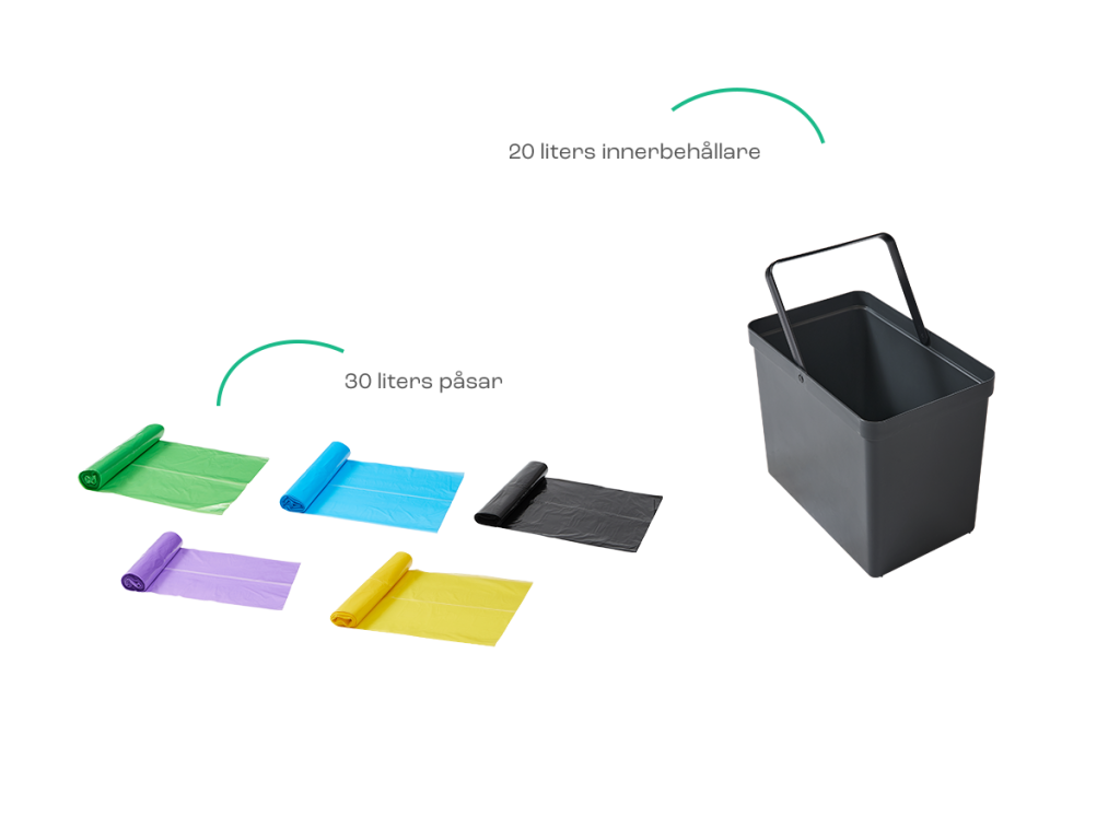 För innerbehållaren med en kapacitet på 20 liter ska du använda påsar på 30 liter.