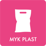 Guide brugerne til nemmere affaldssortering med piktogrammer. Dette selvklæbende piktogram med afrundede hjørner sættes på fronten af affaldsbeholderen. Alle piktogrammer er vaskbare. Farverne og symbolerne følger det fælles affaldssystem fra Brancheforeningen Cirkulær.